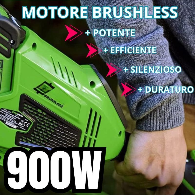 Green V40® monta un motore brushless da 900W, che garantisce potenza, efficienza e durata nel tempo.